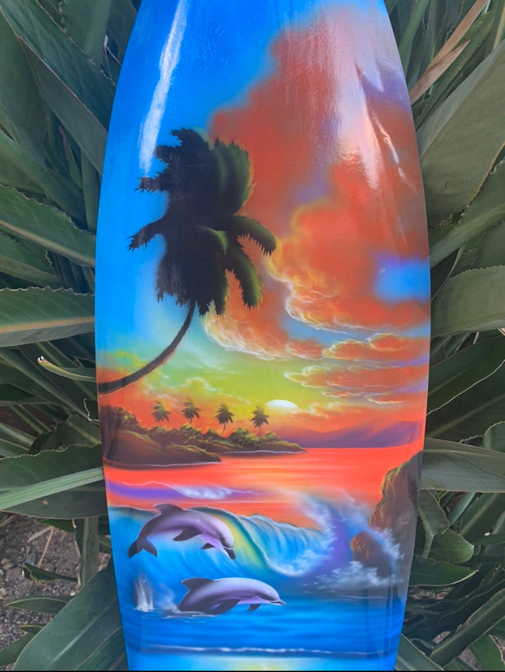 Beautiful set of 3 Turtle, Dolphin, and Sunset Tropical surfboard wall plaques. They are made from top of the line Mango wood. Painted with an airbrush in immaculate detail. They would make a awesome addition to your home, patio, or tiki bar. Bring a taste of the islands home to you! Each surfboard measures 39"x 10" inches