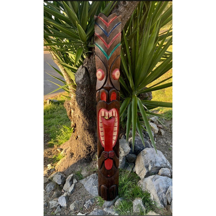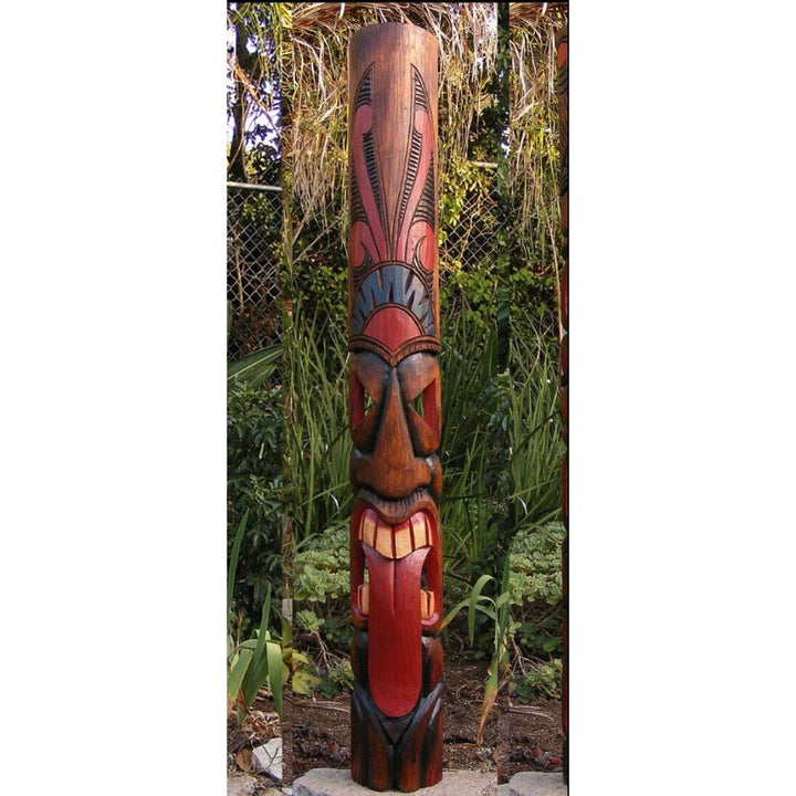 Each mask in the set stands at 5 ft. tall, and has a width of 6-7 inches. They would make a wonderful addition to your collection of decorative accessories or pool decor. These Tiki Totem Masks are a must-have for anyone who loves to add a touch of the tropics to their home. The backs of the masks are hallowed out to fit around poles, or can be hung flat up on the wall. This mask will make a great gift for any tiki lover, or buy it for yourself! :) You will get one of each of these masks. 60"x 6-7" inches
