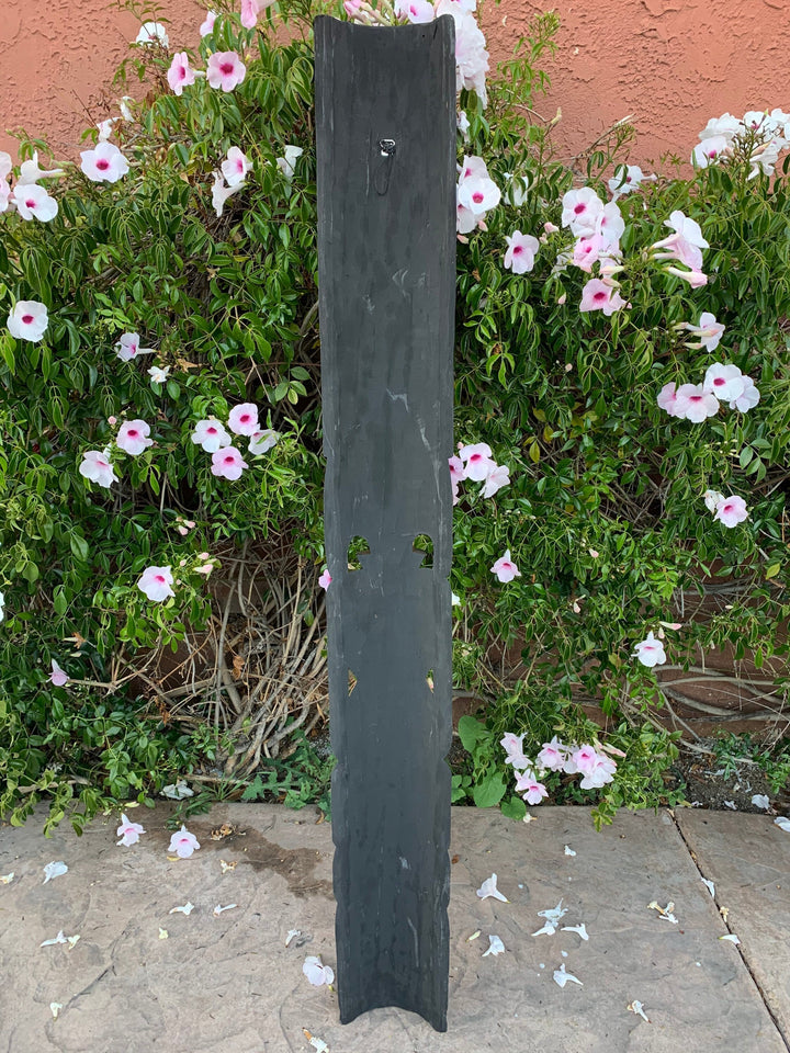 This set of hand-carved wooden tiki masks would make a great addition to your home, patio, yard, or tiki bar! These masks are beautifully hand crafted and painted making each one unique. The backs of the masks are hallowed out to fit around poles, or can be hung flat up on the wall. This mask will make a great gift for any tiki lover, or buy it for yourself! :) You will get one of each of these masks. 60"x 7/8" inches Will eventually start to fade if left out in the sun. We highly recommend an polyurethane gloss spray with UV protection for upkeep.