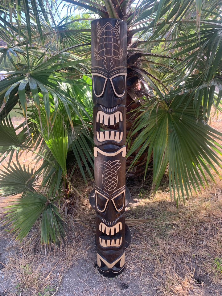 5 Foot Set of Hand Carved Wooden Tiki Totem Masks Tropical Bar Patio Decor 60"x 7"in