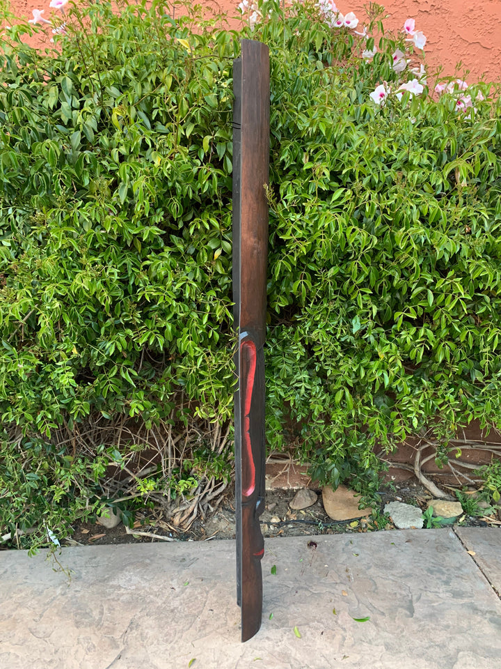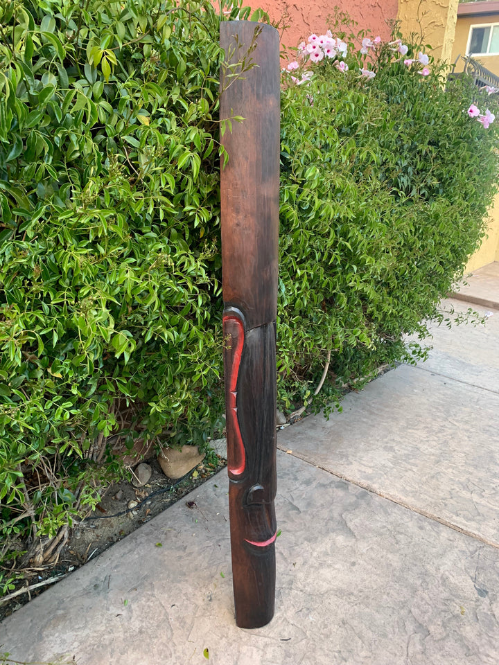 This hand-carved wooden tiki mask would make a great addition to your home, patio, or tiki bar! This is a traditional Moai mask of the Easter Islands. These masks are beautifully hand crafted and painted making each one unique. The backs of the masks are hallowed out to fit around poles, or can be hung flat up on the wall. This mask will make a great gift, or buy it for yourself! :) 5' ft x 6-7" inches