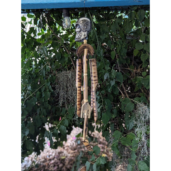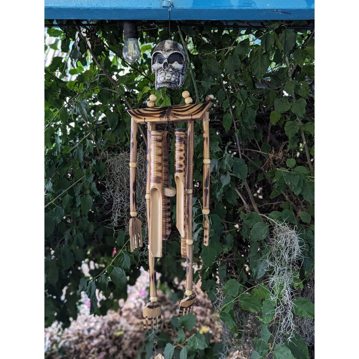 Bamboo Skeleton Skull Wind Chime Tiki Bar Tropical Gothic- Eco Friendly