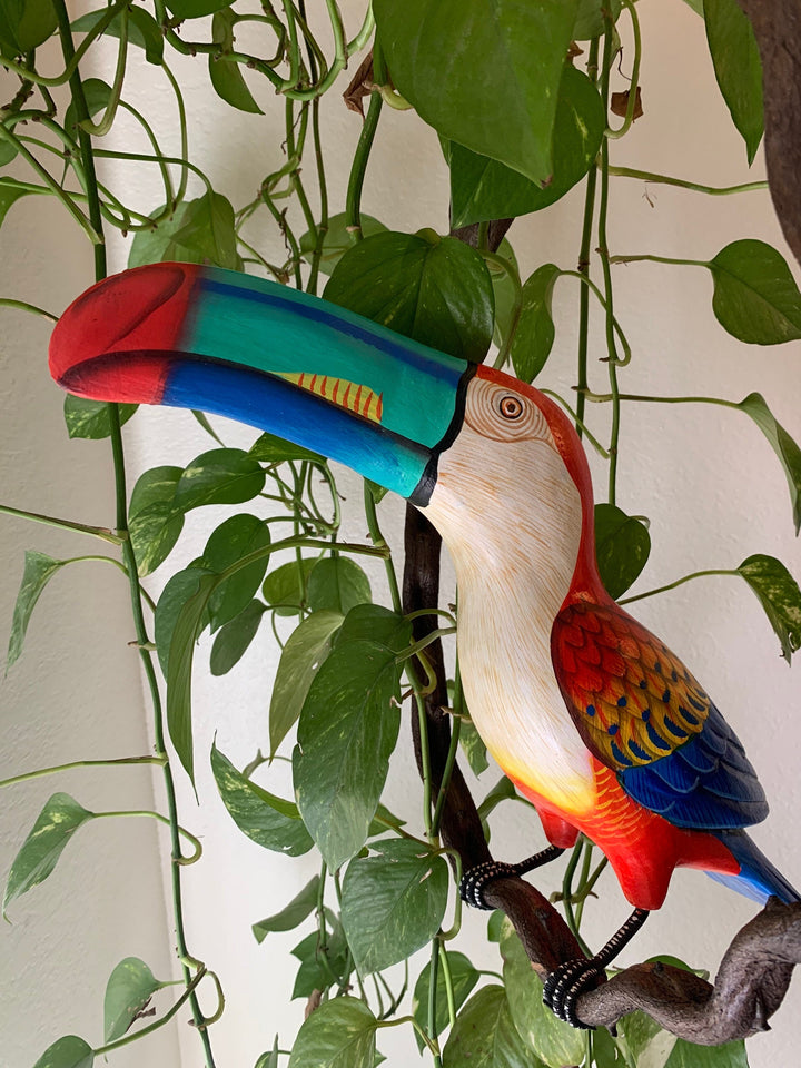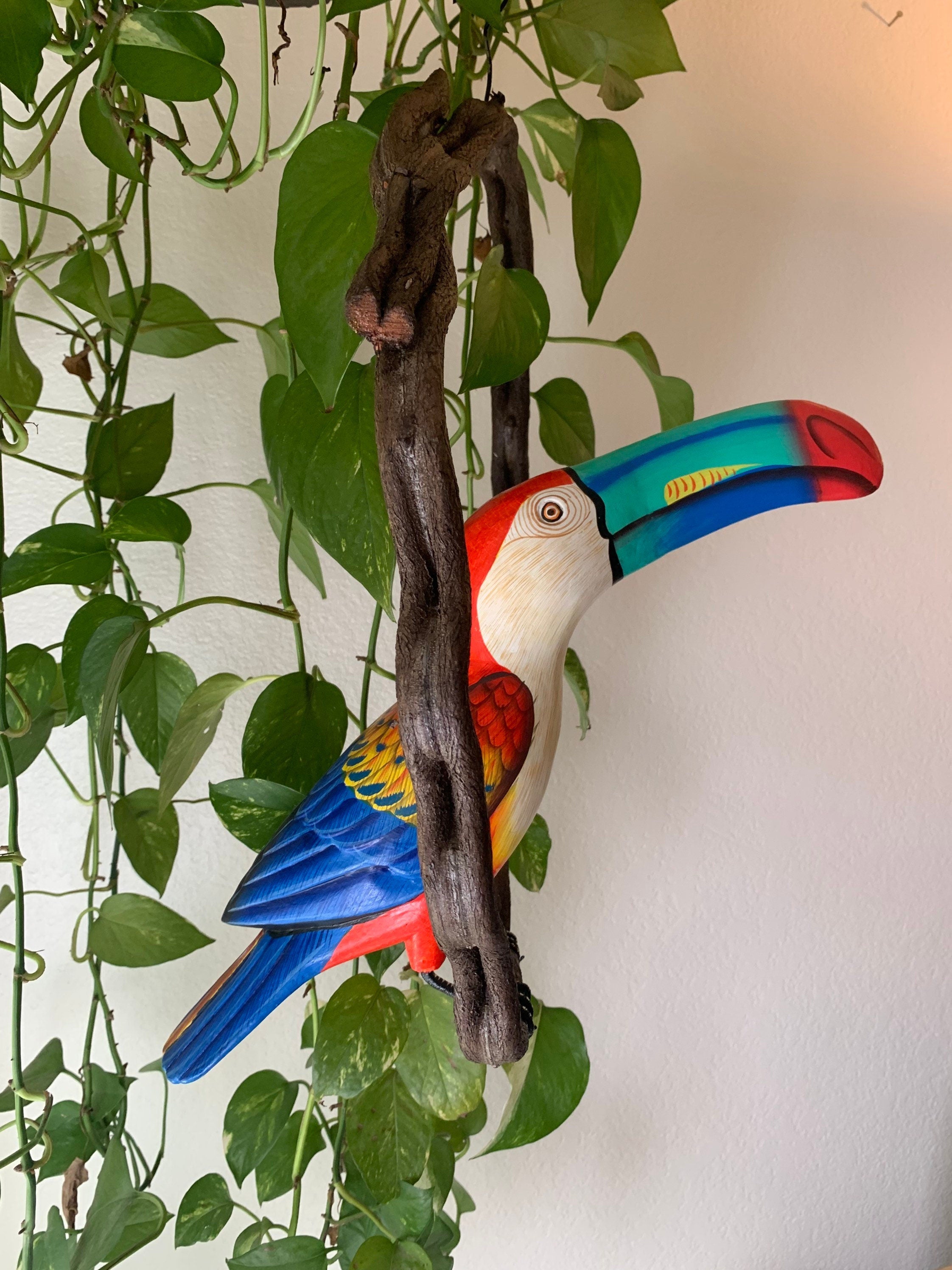 Colorful Toucan Handcrafted Wood Hanging Bird Statue 20"in Head to Tail