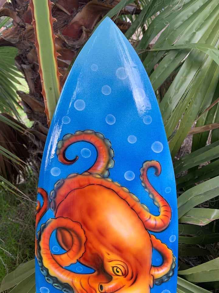 Tropical Airbrushed Octopus Decorative Surfboard Wall Plaque mango Wood 39"x10"