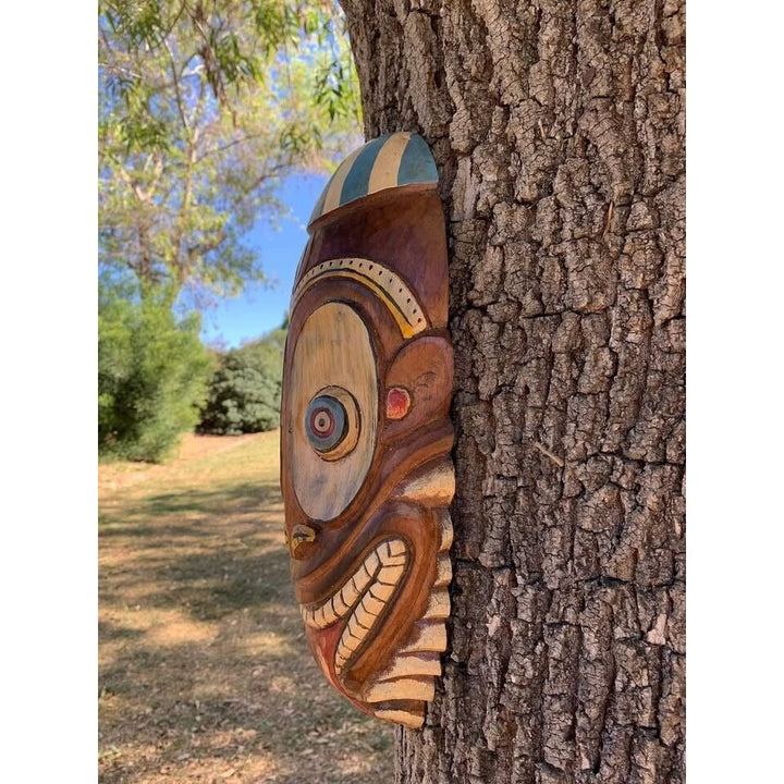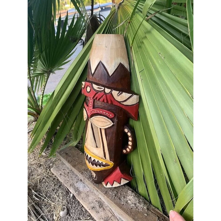 Just arrived these hand made Enchanted tiki room masks. You will get one of each of these masks in this set. One Pele, one Trader sams and one Jungle cruise tiki mask. Bring home a piece of the Magic Kingdom's Enchanted Tiki Room. Hand carved and painted from albesia wood. Flat on the back with a hanger to hang on the wall. Would make a great addition to your home, patio, or Tiki Bar! Would make a fun gift, or keep for yourself! Pele and jungle cruise masks measure 20" x 9" and the Trader Sams is 16" x 8".