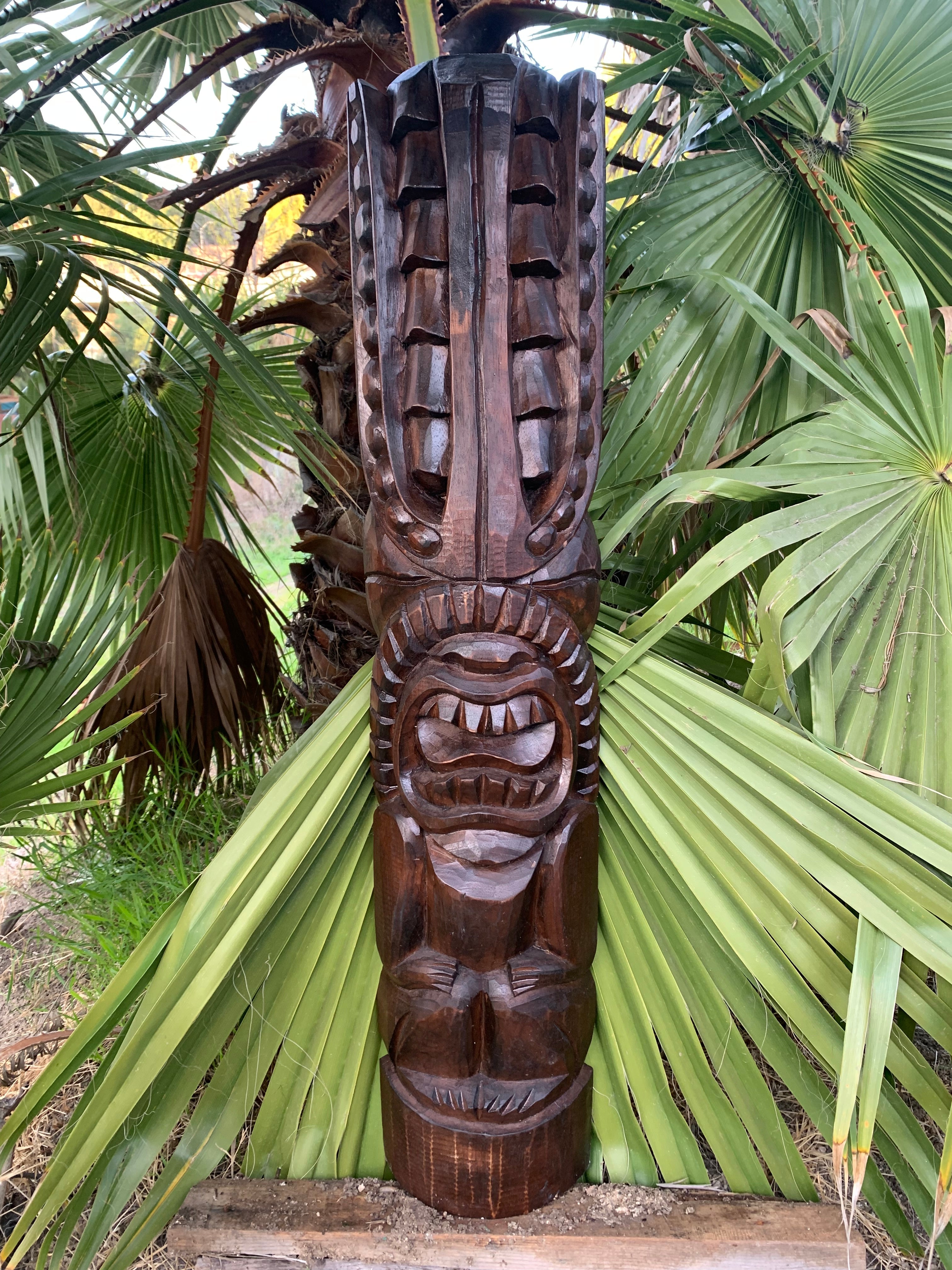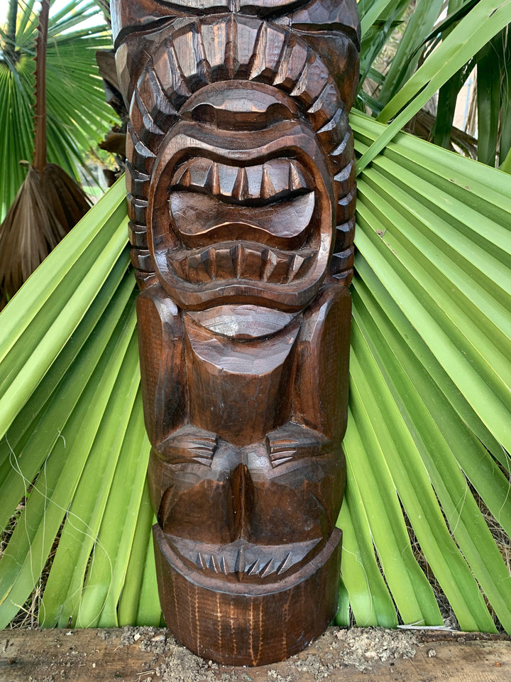 Hawaiian Lono Tiki Half Statue hand Carved 39"x 8"in