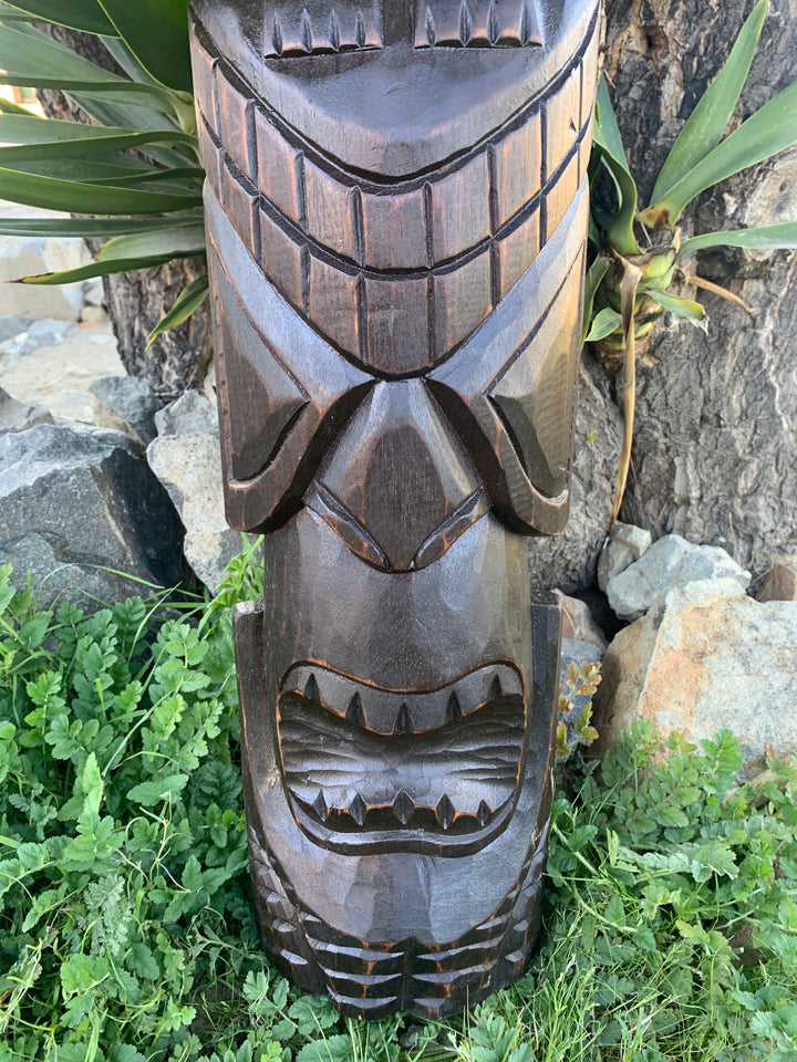 Beautiful Set of hand carved Hawaiian Tiki God half Statues. Ku is the God of War, and Kane is the God of creation, sunlight, forest, and fresh water. Lono is the God of of agriculture and fertility. Kanaloa is known as the God of the Sea, and ling distance sailing voyages. This carving can be hung on the wall, or as a statue. Great for indoors or outdoors. These measure approximately 39"x 6". Makes a great gift! Or put this piece up in your own home, yard, patio, or tiki bar!