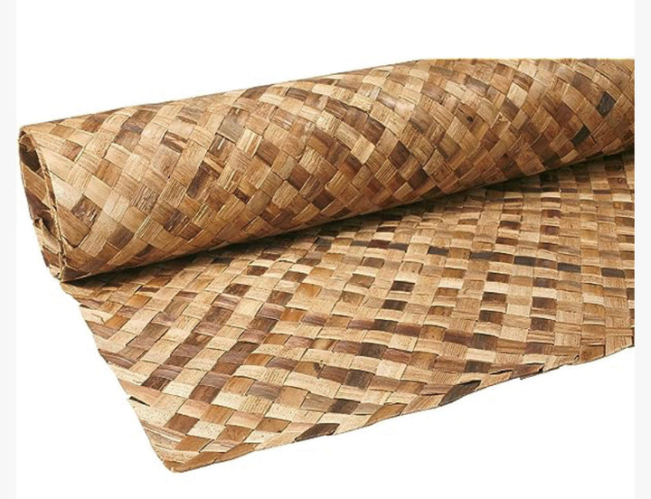 Our Lauhala matting rolls measure approximately 4' x 8' feet. The Lauhala mats are made from dried Hala leaves that are durable and eco-friendly. This matting is a perfect addition for your home tiki bar, cabana, or palapa. Our matting is hand-woven, has a one inch checkered weave, and may vary slightly in color.