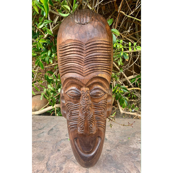 Māori Inspired Tribal Tiki Mask New Zealand Wall Plaque Tropical Bar Patio Decor 20"x 7"