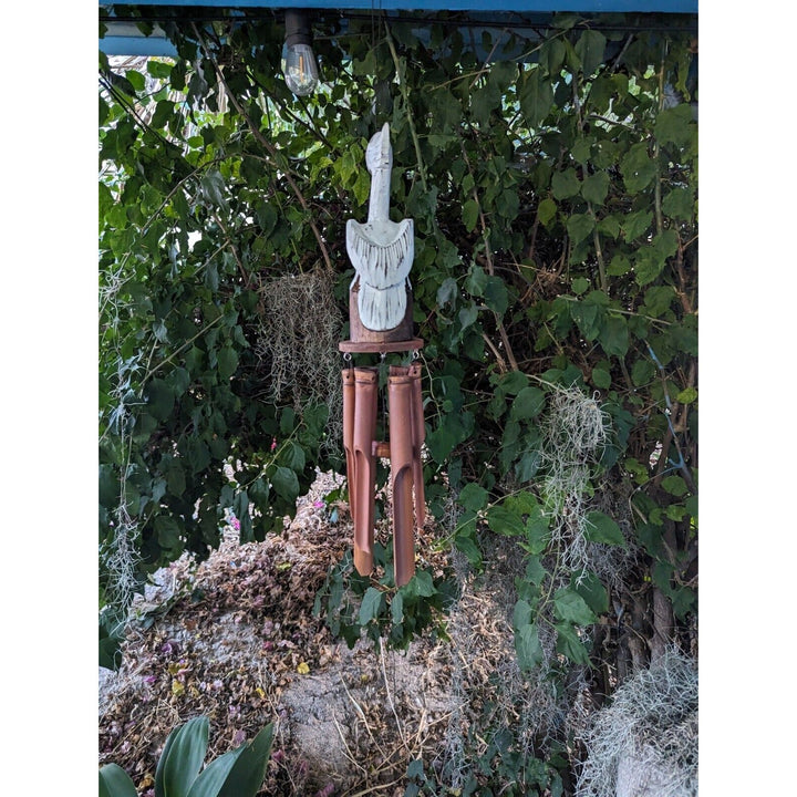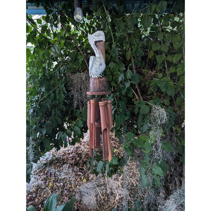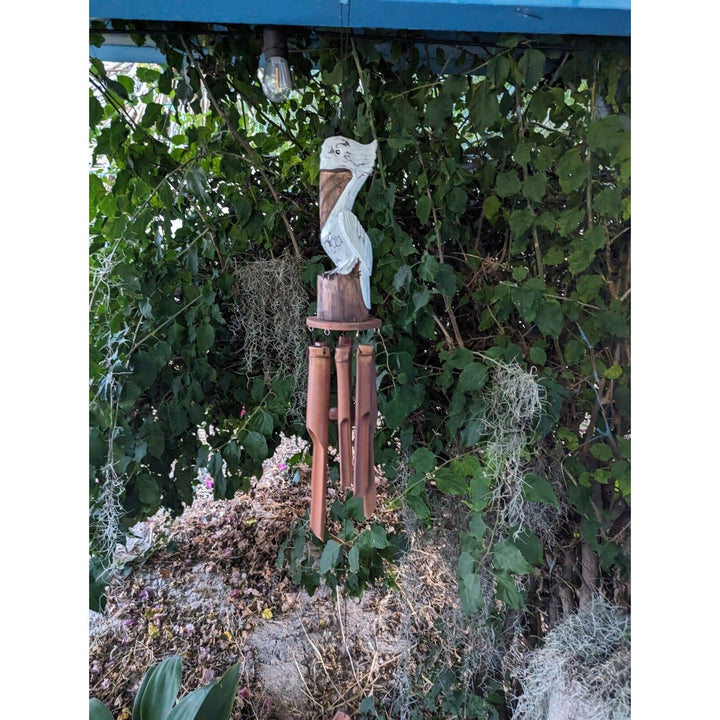 Pelican Wooden Bird Coconut Bamboo Wind Chime Tiki Bar Tropical - Eco Friendly