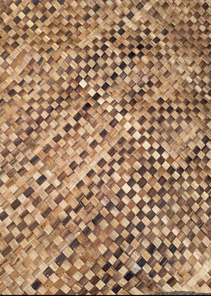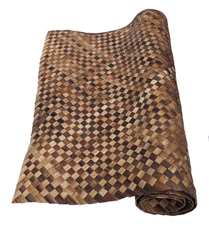 This Bac Bac matting roll measures approximately 4' x 8' feet with a 1" woven diamond checkered pattern. Slighty darker then Lauhala matting, Bac Bac mats are made from dried banana bark strips that are durable and eco-friendly. This matting is a perfect addition for your home tiki bar, cabana or palapa. Our matting is hand-woven, and may vary slightly in color, size and pattern.