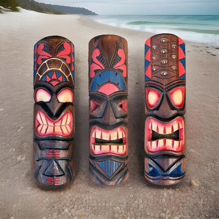 SET OF 3 20" TIKI MASK HAWAIIAN WALL ART ISLAND HOME DECOR TRIBAL BAR TROPICAL