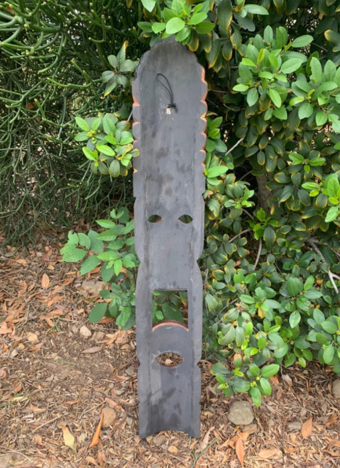 These Hawaiian style wood carved mask are a great way to spice up any patio, room, or tiki bar! These masks are beautifully hand carved and stained. They can be used indoors or outdoors. The backs of the masks are hallowed out to fit around poles but can be placed flat against the wall. This mask will make a great gift or put this piece up in your own home, patio, or yard.