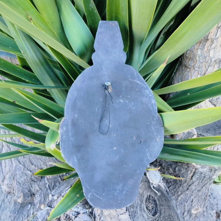 Shrunken Head Voodoo Wooden Wall Plaque Tropical Tiki Decor 12"x 6.5"