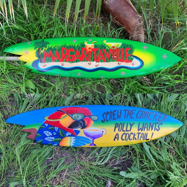 Tiki Bar Surfboard Set Margaritaville Polly Wants a Cocktail! Tropical Bar Patio Decor