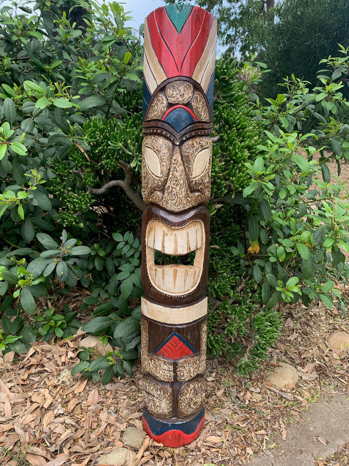 This hand-carved wooden tiki mask would make a great addition to your home, patio, yard, or tiki bar! These masks are beautifully hand crafted and painted making each one unique. The backs of the masks are hallowed out to fit around poles, or can be hung flat up on the wall. This mask will make a great gift, or buy it for yourself! :) 39"x 6" inches
