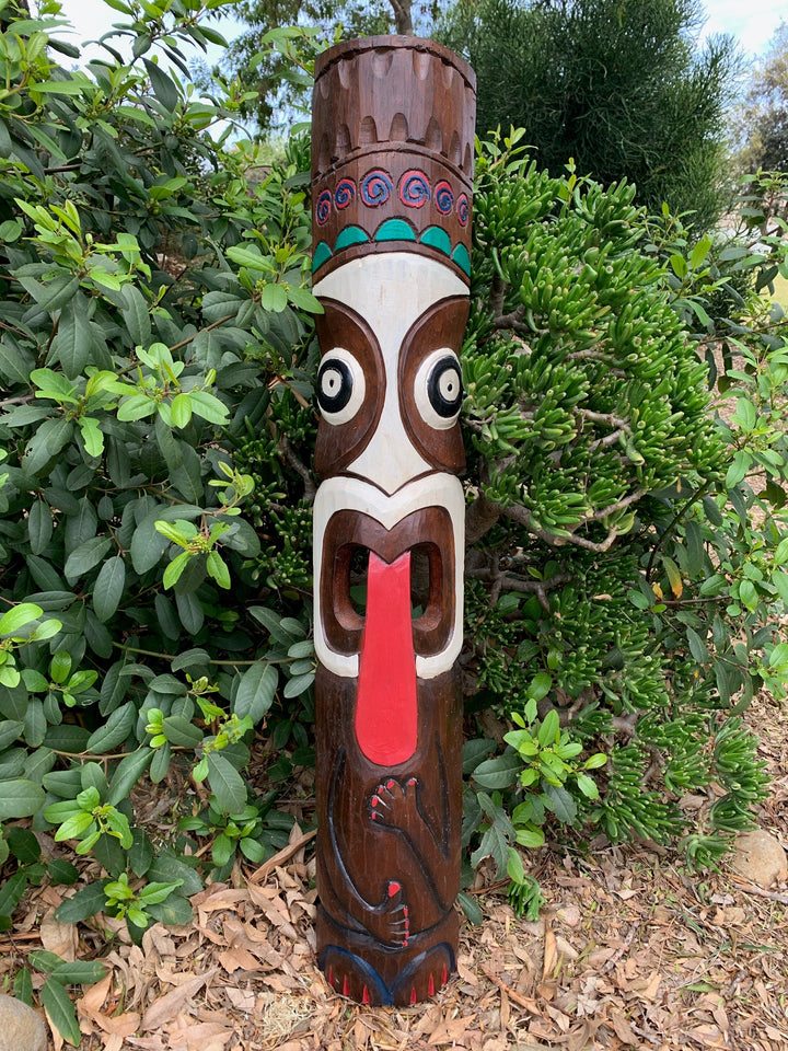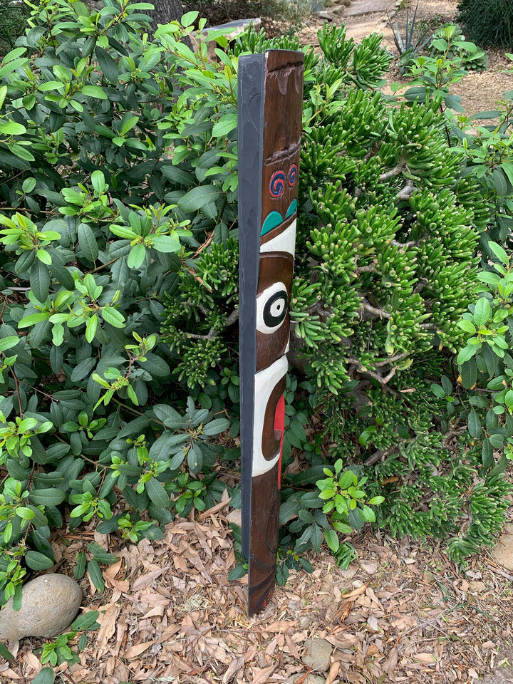 This hand-carved wooden tiki mask would make a great addition to your home, patio, yard, or tiki bar! These masks are beautifully hand crafted and painted making each one unique. The backs of the masks are hallowed out to fit around poles, or can be hung flat up on the wall. This mask will make a great gift, or buy it for yourself! :) 39"x 6" inches