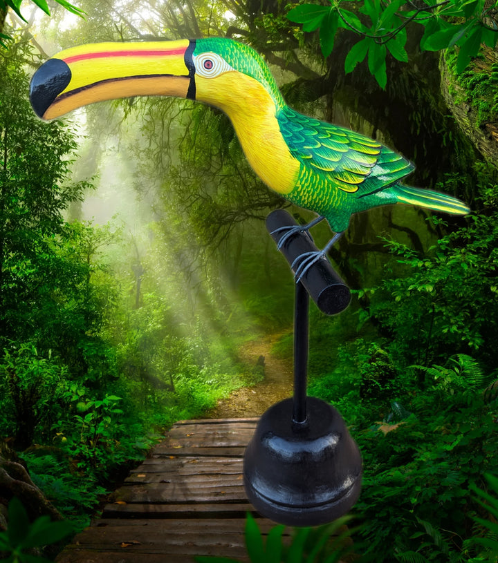 Tropical Green Toucan Wood Carving Statue 20" beak to tail