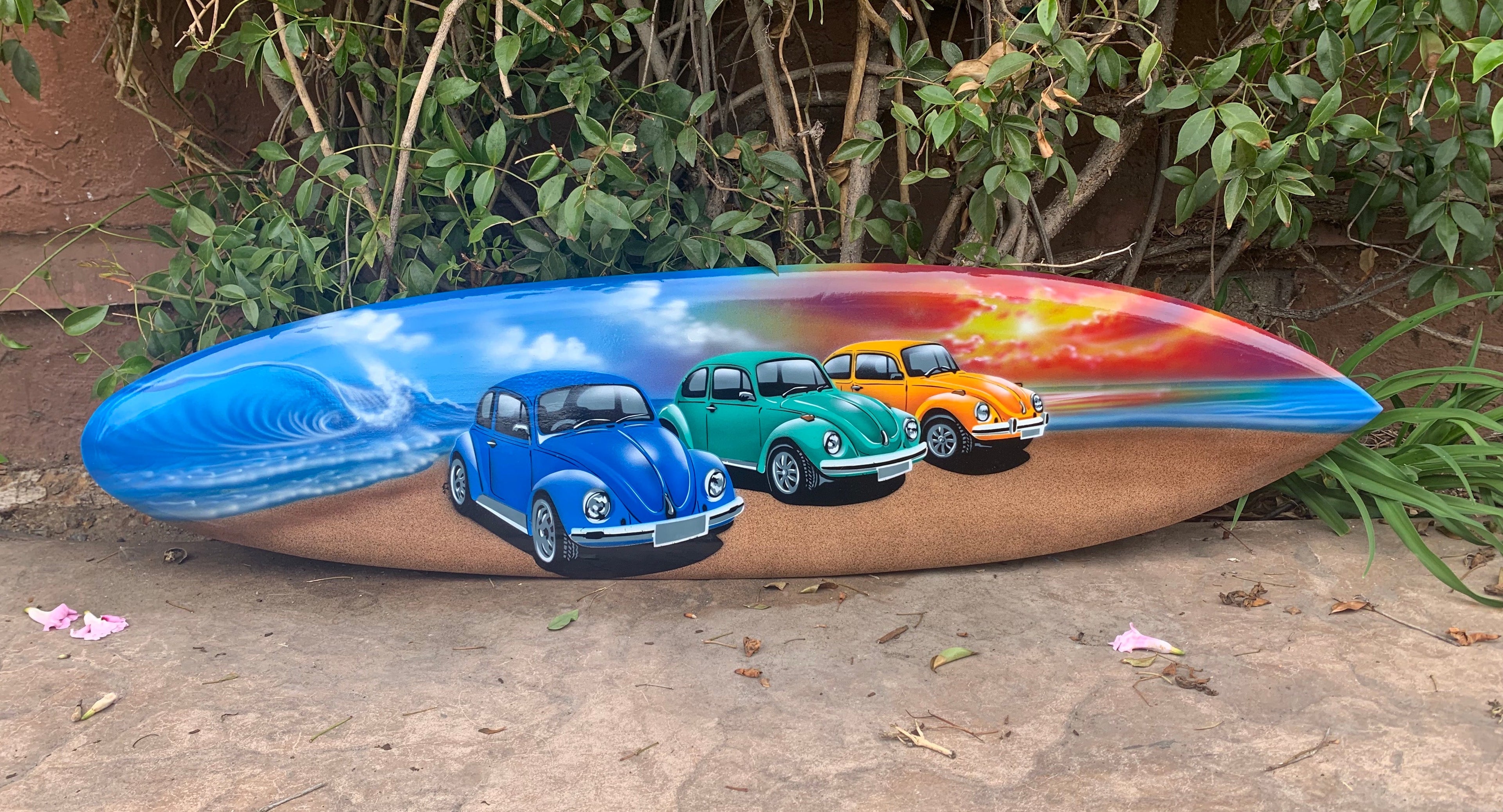Volkswagen VW Beetle Airbrushed Beach Surfboard Wall Plaque 39"x 10" in